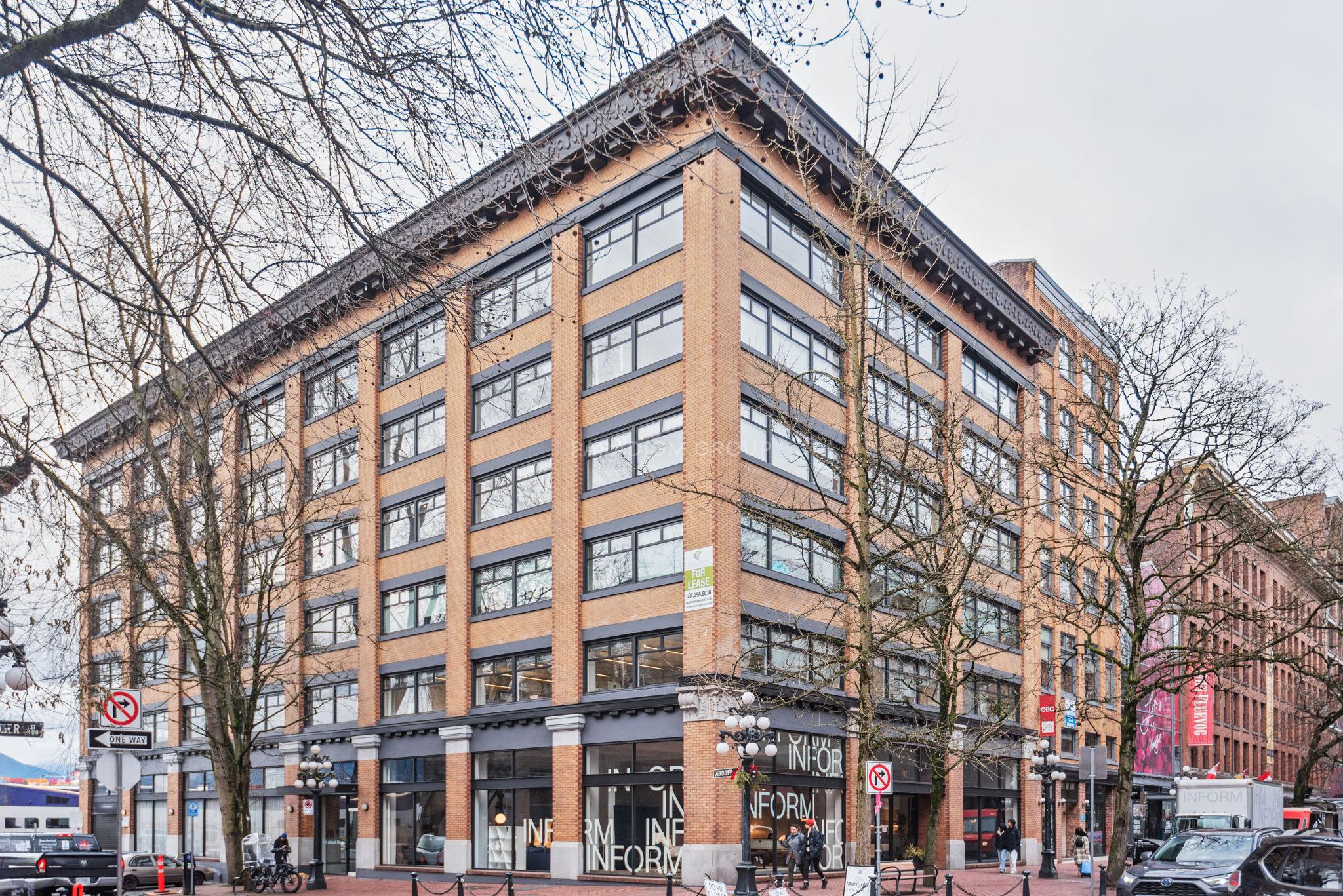 Located at the northeast corner of Water and Abbott Streets, the building sits at the heart of Gastown. Home to a thriving community of architects, tech firms, and creative professionals, the building provides a dynamic environment that fosters innovation and collaboration. Surrounded by boutiques, cafés, and fine dining, and offering seamless access to the downtown core, this space presents a great opportunity to establish your business in a highly sought-after, internationally recognized location.