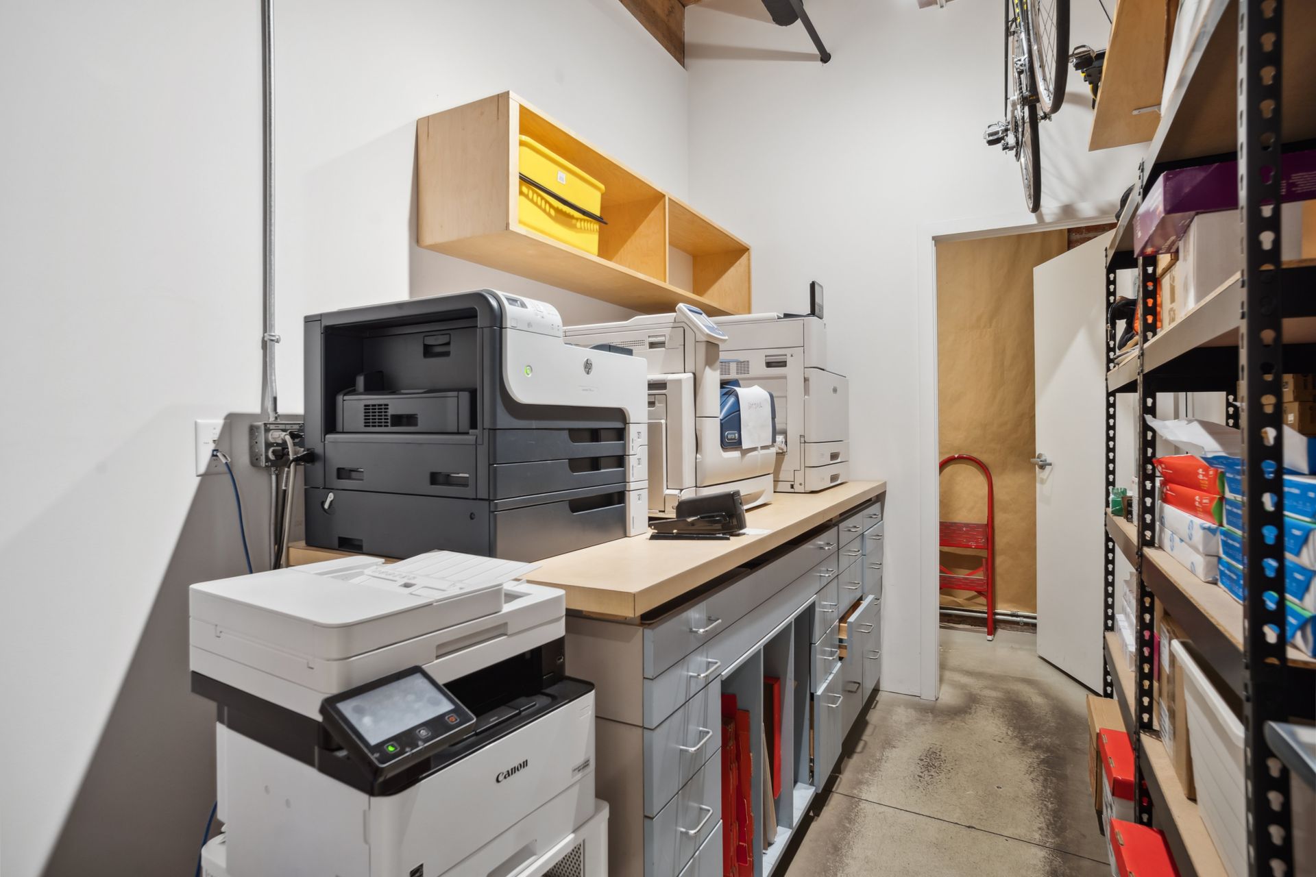 It’s a unique and well-designed space, full of natural light, with a welcoming front entry, a private conference room, a full kitchen, and security shutters.