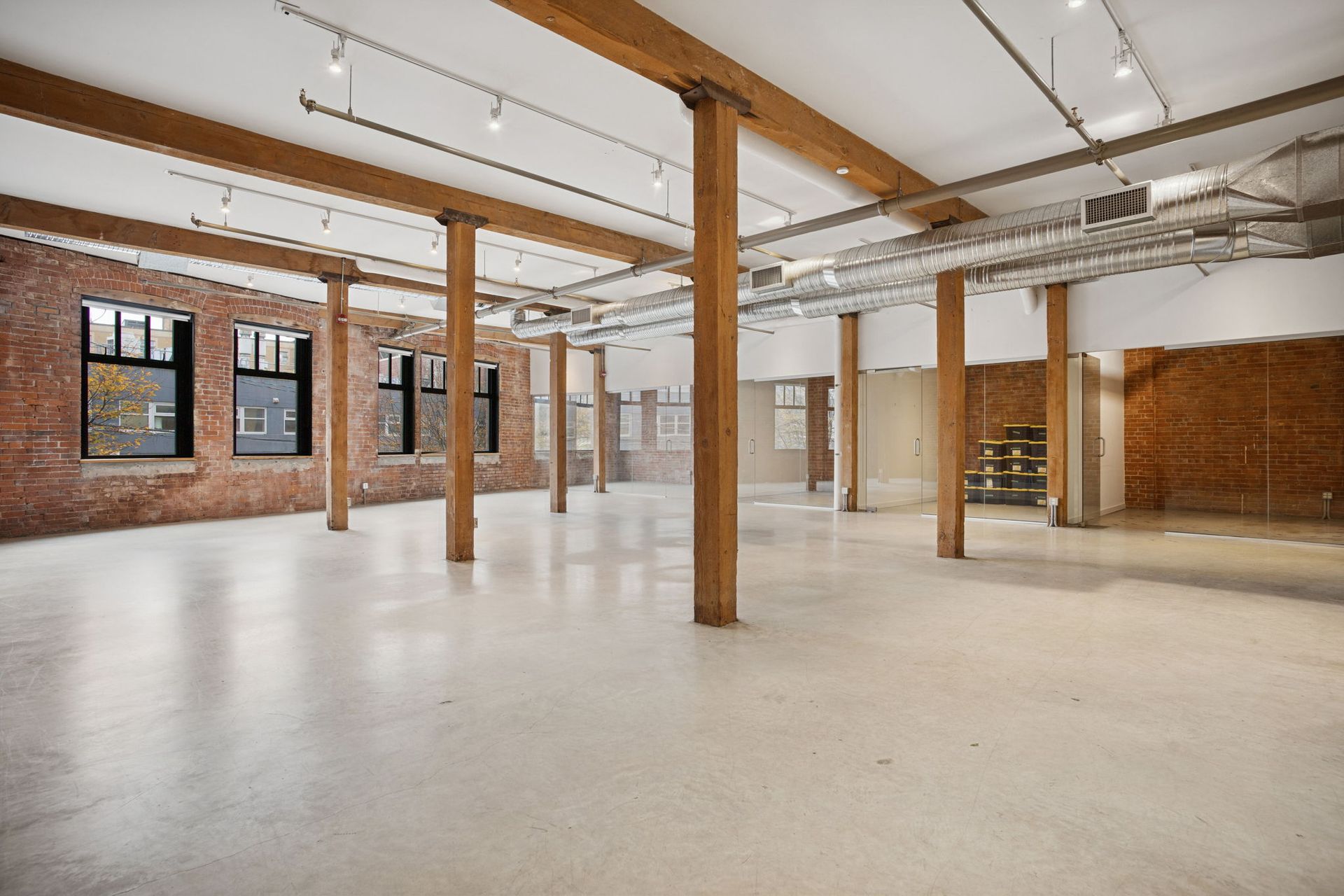 A perfect combination of brick-and-beam character, polished concrete floors, and glass-fronted offices that create an inspiring workspace.